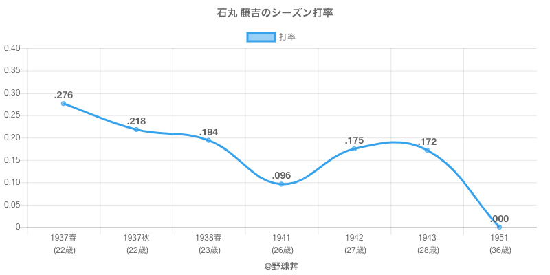 石丸 藤吉は1937春年から1951年にかけて活躍した元松竹や名古屋所属のプロ野球選手です。 投打は右投右打で、守備位置は主にができ、日本球界初出場は1937春年で当時23歳でした。 同年代には藤田(元国鉄)古川(元イーグルス)がいます。 過去には1942年名古屋で全105試合出場ヒット72本や1943年名古屋で全83試合出場ヒット52本という結果を残しています。