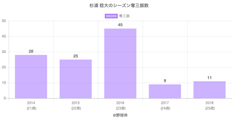 8位 杉浦 稔大 45