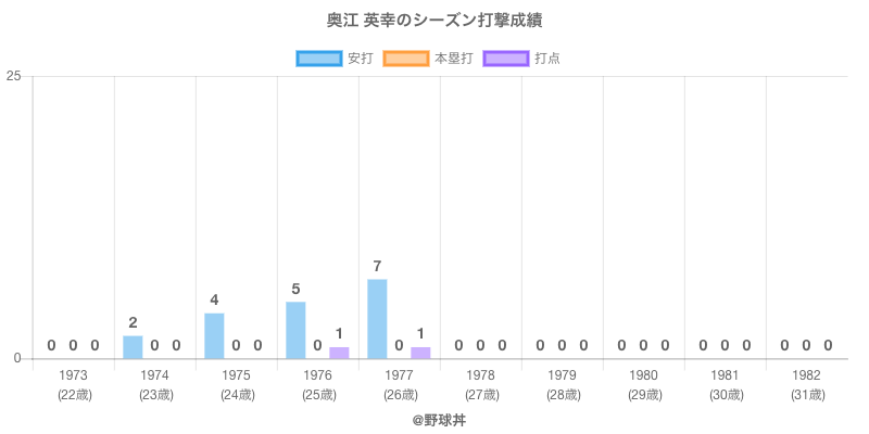奥江 英幸 (75歳)は1973年から1982年にかけて活躍した元ロッテや大洋所属のプロ野球選手です。 投打は右投右打で、守備位置は主に投手、日本球界初出場は1973年で当時23歳でした。 同年代には井本(元ヤクルト)ビル(元ロッテ)がいます。 過去には1976年大洋で全52試合出場121奪三振や1974年大洋で全51試合出場38奪三振という結果を残しています。