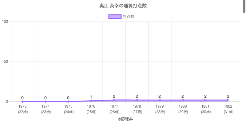 | 1978 | ロッテオリオンズ | 20 | 82 | .100 | 1 | 9 | 0 | 48 |