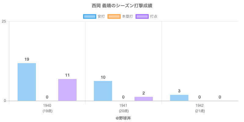 | 1941 | 大洋軍 | 36 | 77 | .130 | 10 | 0 | 2 |