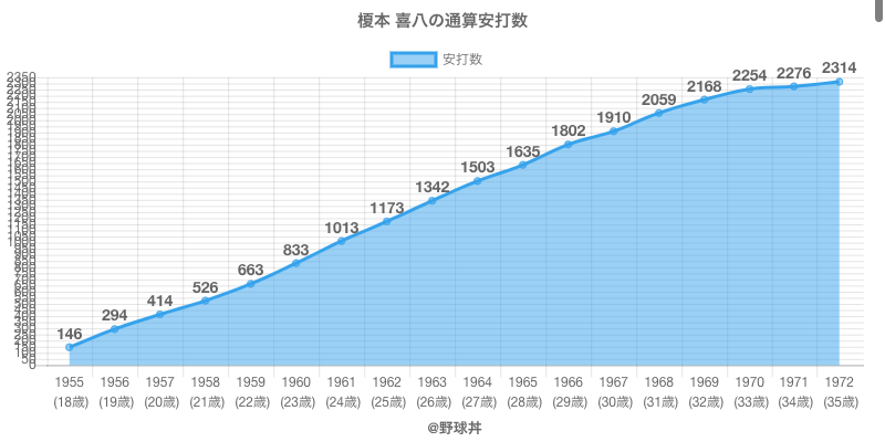 榎本 喜八 (89歳)は1955年から1972年にかけて活躍した元大毎や毎日所属のプロ野球選手です。 投打は左投左打で、守備位置は主にができ、日本球界初出場は1955年で当時19歳でした。 同年代には長谷川(元高橋)河西(元大映)がいます。 過去には1956年毎日で全152試合出場ヒット148本や1964年東京で全149試合出場ヒット161本という結果を残しています。 また3度主要タイトルを獲得しています。(最優秀新人1回 / 首位打者2回)