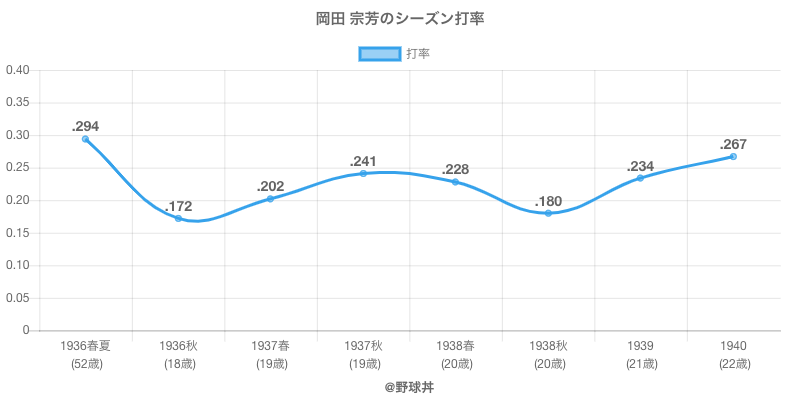 | 1938春 | 33 | 101 | .228 | 23 | 0 | 12 | |