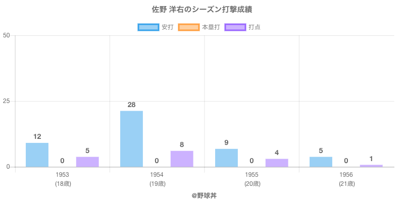佐野 洋右 (90歳)は1953年から1956年にかけて活躍した元大映所属のプロ野球選手です。 投打は右投右打で、守備位置は主にができ、日本球界初出場は1953年で当時18歳でした。 同年代には宮川(元広島東洋)田中(元広島)がいます。 過去には1954年大映で全72試合出場ヒット28本や1953年大映で全41試合出場ヒット12本という結果を残しています。