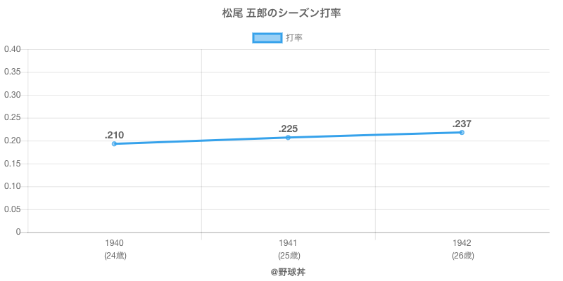 松尾 五郎は1940年から1942年にかけて活躍した元阪神所属のプロ野球選手です。 投打は右投右打で、守備位置は主に外野手ができ、日本球界初出場は1940年で当時25歳でした。 同年代には安永(元金鯱)江口(元阪急)がいます。 過去には1942年阪神で全58試合出場ヒット40本や1941年阪神で全52試合出場ヒット34本という結果を残しています。
