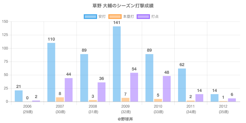 | 2006 | 東北楽天ゴールデンイーグルス | 43 | 100 | .210 | 21 | 0 | 2 |