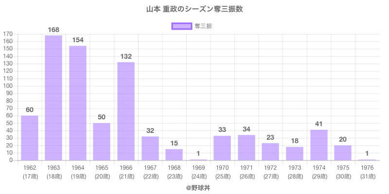 | 1962 | 近鉄バファローズ | 25 | 61 | .286 | 2 | 5 | 0 | 60 |