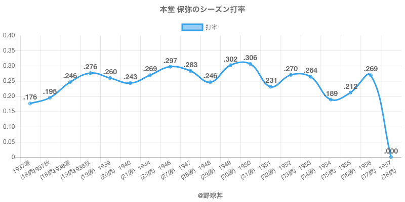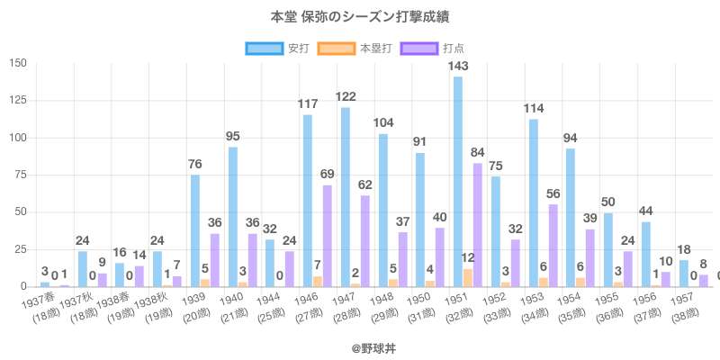 | 1937秋 | 37 | 123 | .195 | 24 | 0 | 9 | |