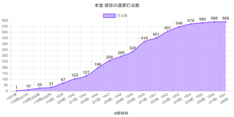 | 1938春 | 24 | 65 | .246 | 16 | 0 | 14 | |