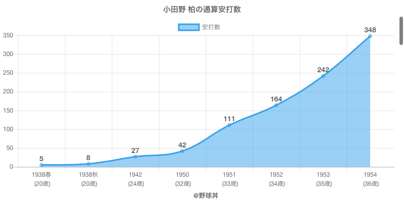 小田野 柏は1938春年から1954年にかけて活躍した元近鉄や西鉄所属のプロ野球選手です。 投打は右投右打で、守備位置は主に外野手・投手ができ、日本球界初出場は1938春年で当時21歳でした。 同年代には加藤(元タイガース)島方(元近鉄)がいます。 過去には1938春年阪急で全10試合出場防御率1.69や1942年阪急で全7試合出場防御率0.83という結果を残しています。