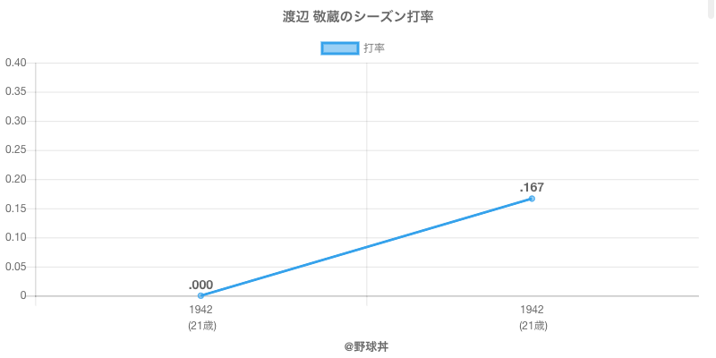 渡辺 敬蔵は1942年から1942年にかけて活躍した元大洋や阪神所属のプロ野球選手です。 投打は右投右打で、守備位置は主にができ、日本球界初出場は1942年で当時21歳でした。 同年代には荒木(元近畿日本)増田(元大映)がいます。 過去には1942年大洋で全10試合出場ヒット2本という結果を残しています。