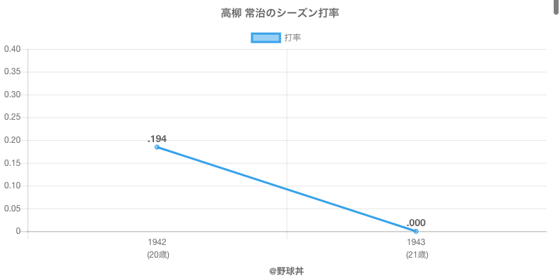 たかやなぎ つねはる 高柳 常治 高柳 常治は1942年から1943年にかけて活躍した元阪急所属のプロ野球選手です。 投打は右投右打で、守備位置は主にができ、日本球界初出場は1942年で当時20歳でした。 同年代には別所(元読売)や白坂(元阪神)がいます。 過去には1942年阪急で全13試合出場ヒット6本という結果を残しています。