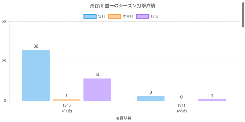 | 1940 | 黒鷲軍 | 61 | 138 | .232 | 32 | 1 | 14 |